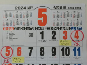 *5月3日(金)は、9:00~18:00まで営業いたします。