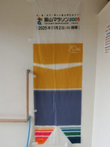 富山マラソンのPRも兼ねて、玄関口に設置しました。