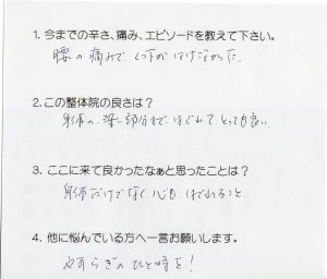 こちらの患者様は、月に数回お体のメンテナンスにお越しになられています。