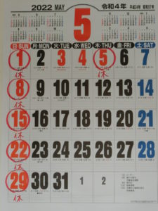 5月3日(火) 8:30~19:00までの通常営業