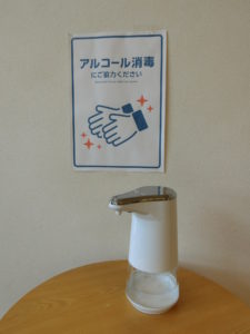 ・受付に「アルコール消毒液」を設置しましたので、入退室の際に手指の消毒にご利用下さい。