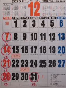 *12月31日(水)~1月3日(土)まで年末年始のお休みをいただきます。 年始は、1月4日(日)より営業予定です。