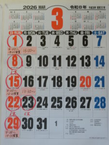 3月は、変則的な予定になります。予定の変更やご予約の変更等も出る場合があります。予約状況等は、オンライン予約でご確認下さい。