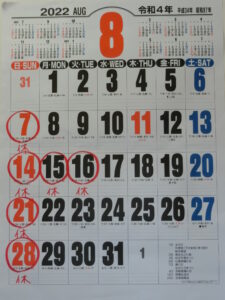 *8月15日(月) お盆休みをいただきます。