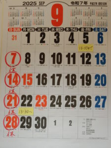 【9月のお知らせ】 *日曜・・・休院 *5日(金)は、都合により午後4時までの営業となります。 *15日(祝)、23日(祝)は、8:30~19:00まで通常営業いたします。 *22日(月)は、都合により午後1時半からの営業となります。