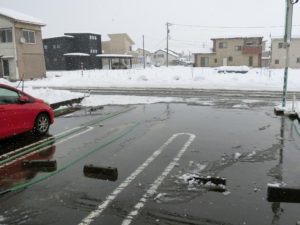 しかし、駐車場前の道路は融雪装置がなされてないため、手作業での除雪になります。