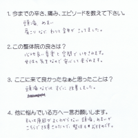 頭痛、めまい、肩こりで全身が凝っていました。 女性の先生なので安心して来られます。 頭痛がこちらですぐに改善したので、おすすめです。 高岡市 30代 女性