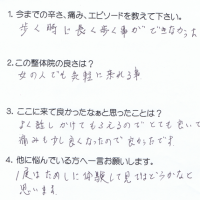 夜も寝られないくらいの痛み、整形外科でも治らなかった痛みを 治してもらいました。 確実に効果があるので、ためしてみられたらいいと思います。 高岡市 50代 女性