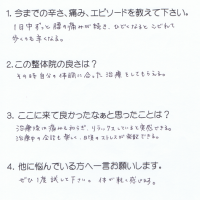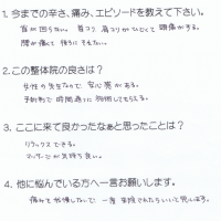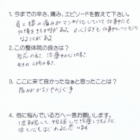 デスクワークなので肩、首のこり、腰痛があり辛かったです。 女性の先生1人で、部屋が静かで、声かけしてもらえるので安心していられます。 高岡市 30代 女性