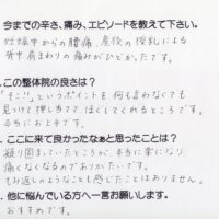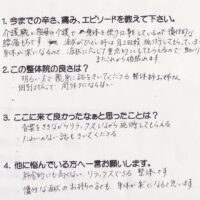 【高岡市 30代 女性】 ■ 今までの辛さ、痛み、エピソードを教えて下さい。 肩のこりが酷かった。 ■ この整体院の良さは? 整体は痛いというイメージがあったのですが、気持ちよい指圧で凝りをほぐしてくれる所 …
