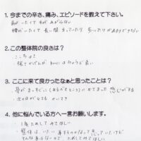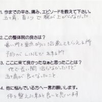 【氷見市 30代 女性】 ■ 今までの辛さ、痛み、エピソードを教えて下さい。 肩周りの凝りが強くなった時に息苦しさや頭痛などが出て辛い ■ この整体院の良さは? とても静かでゆっくり施術していただけて良かっ …