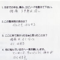 【射水市 50代 男性】 ■ 今までの辛さ、痛み、エピソードを教えて下さい。 腰痛、下半身が硬い ■ この整体院の良さは? 何でも話せる ■ ここに来て良かったなぁと思ったことは? 腰痛が良く …