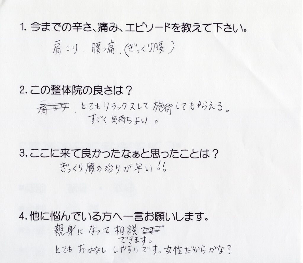とてもリラックスして施術してもらえる。すごく気持ちがよい。