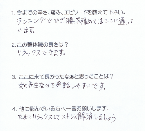 女の先生なので話しやすいです。 たまにリラックスしてストレス解消しましょう。