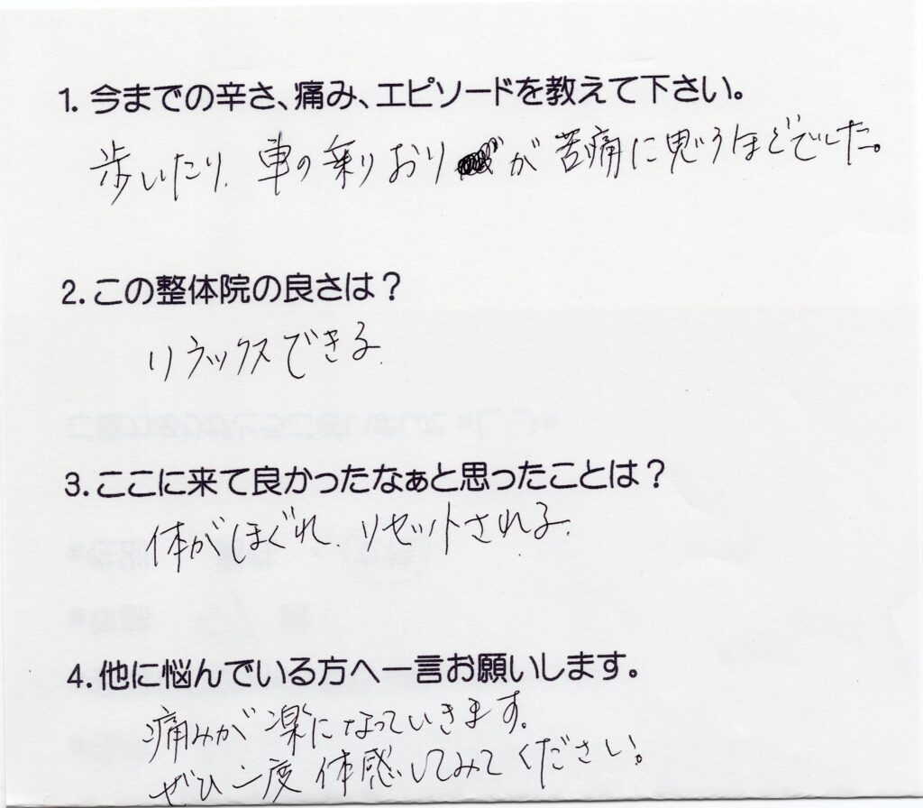 歩いたり、車の乗り降りが苦痛に思うほどでした。