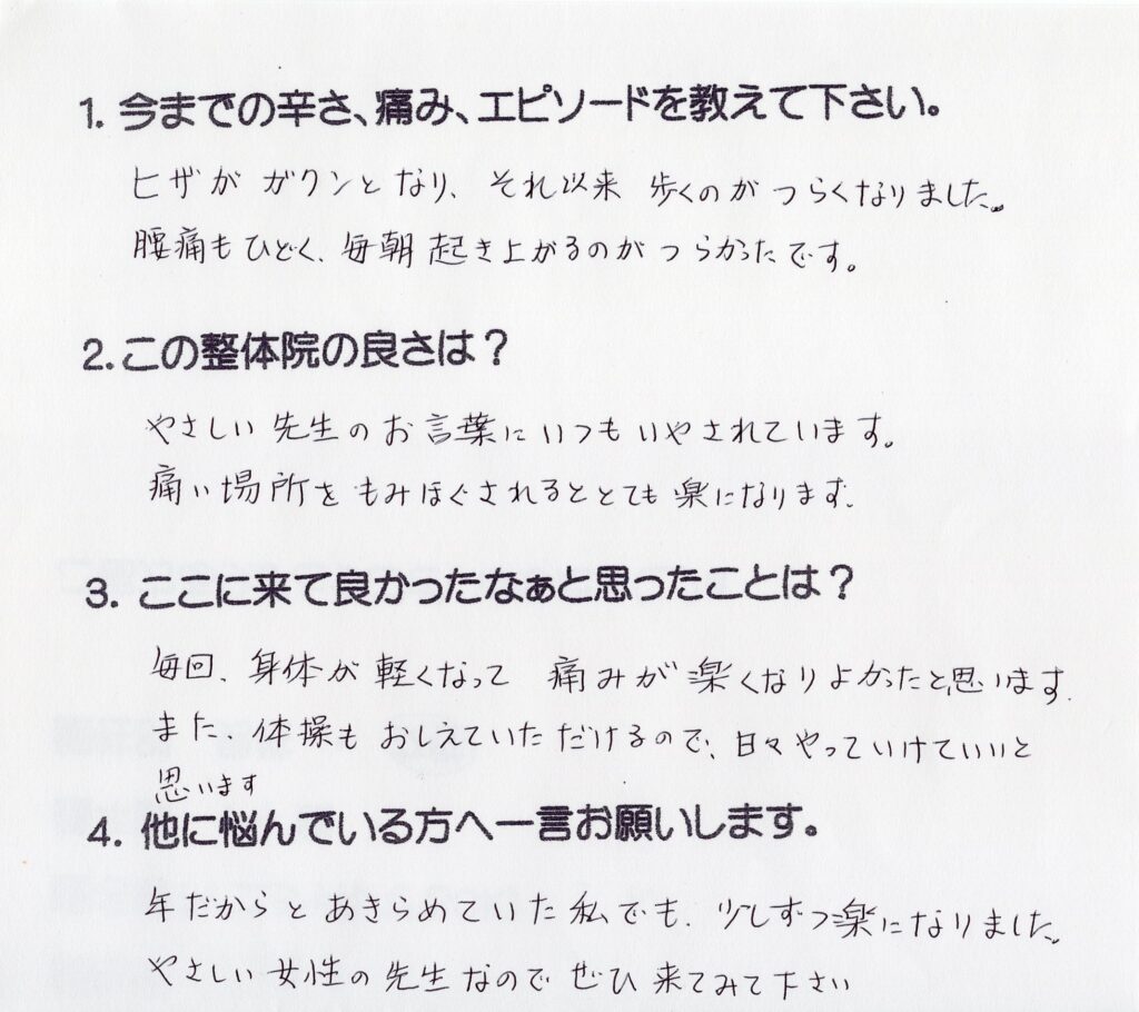 膝がガクンとなり、それ以来歩くのが辛くなりました。