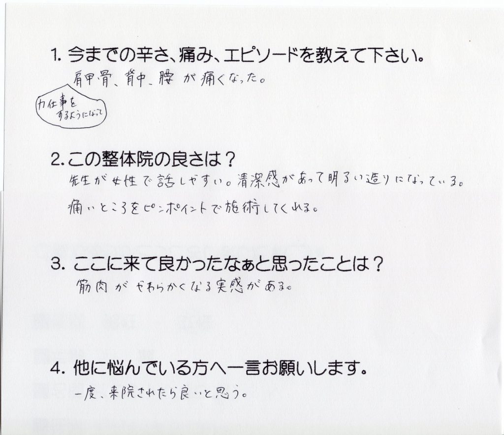 力仕事をするようになって、肩甲骨、背中、腰が痛くなった。